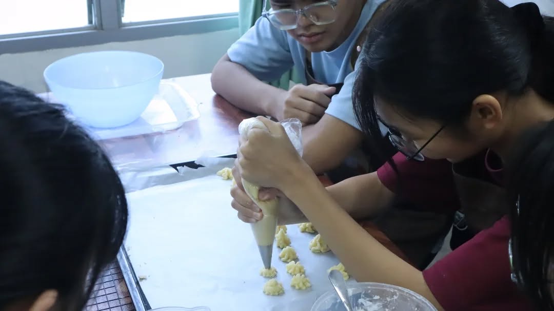 文班同学制作德国酥饼、仁当鸡 2026年2月8日发布 昨天2月7日的校园多了一种让人走不动路的味道。不是食堂的饭菜味,而是文班同学的烘焙课再次开灶啦! 高一文在烤箱前忙得不亦乐乎,德国酥饼一盘盘出炉,奶香缓缓飘散,色泽金黄、口感酥脆,看了就让人忍不住想立刻尝一口。另一边,高二文的锅里正翻滚着仁当鸡,香料在慢火中熬煮,浓郁的椰香与辛香交织,整个空间都在发出“好饿”的讯号。 课堂里,有人专心量材料,有人紧盯火候,也有人肩负起“试吃”的重要任务。成品完成后,大家迫不及待相互分享,还有同学特别为老师们准备了一份,用心满满。 这堂课不只学会了料理,更把属于青春的味道,一起煮进了回忆里。 本校龙狮团受邀参与2026年春风得意马迎春庙会