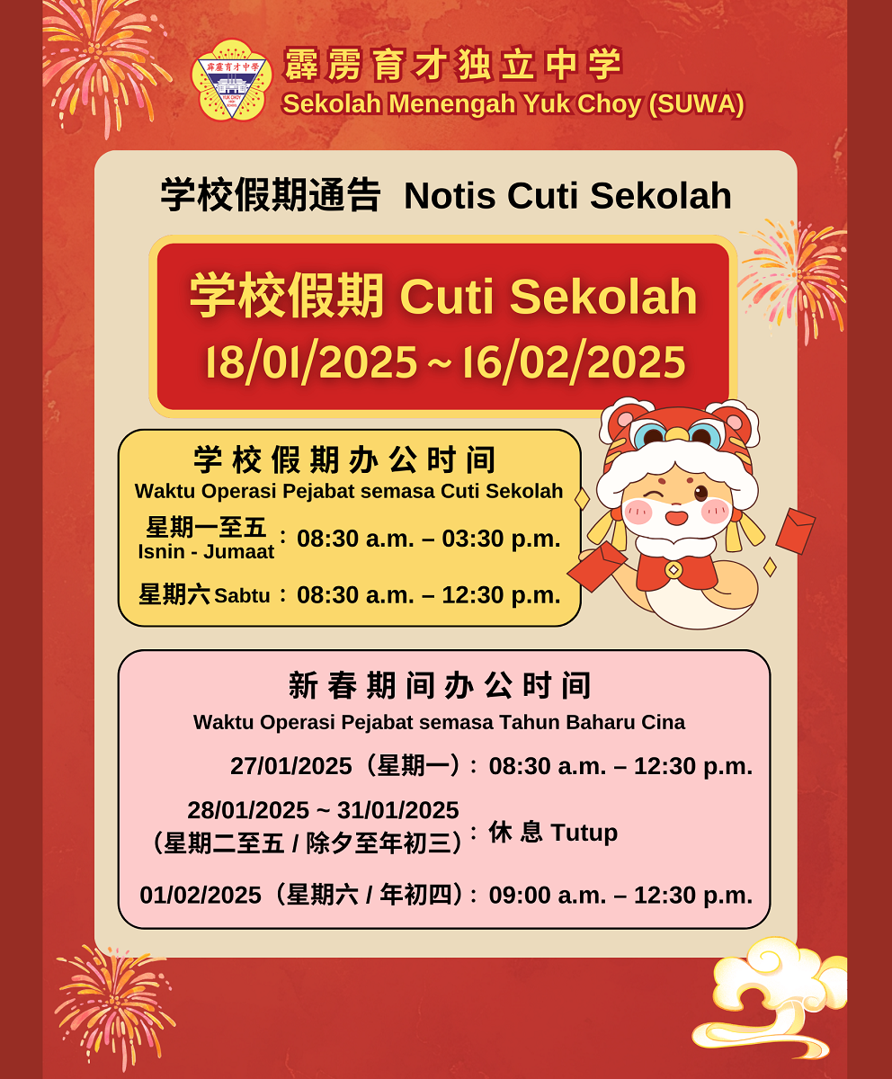 【通告】学校假期: