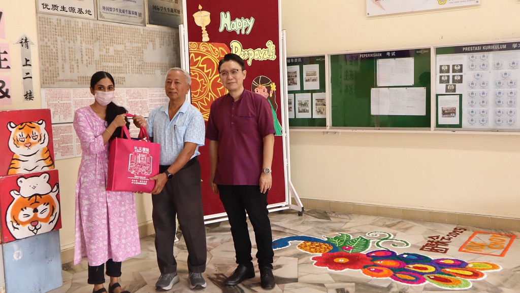 为统考生加油 2025年10月22日发布 统考的脚步日益临近,统考班的同学们正全力以赴,迎接这场意义非凡的挑战。为鼓励考生们在最后阶段保持最佳状态,在辅导处的推动下,校长室携手教务主任与训育主任亲手准备并包装了一份份承载祝福的小礼物,送到每一位统考生的手中,传递温暖与力量。 同时,校方也特别感谢 AUG 及拉曼大学(UTAR)赠送的鼓励横幅,为考生们加油打气,注入满满的祝福与支持。 愿所有统考生在考场上沉着应对,笔锋生花,尽展实力;不负青春岁月,不负多年来的努力与坚持,旗开得胜,载誉而归! 本校赠送印裔教职员礼包