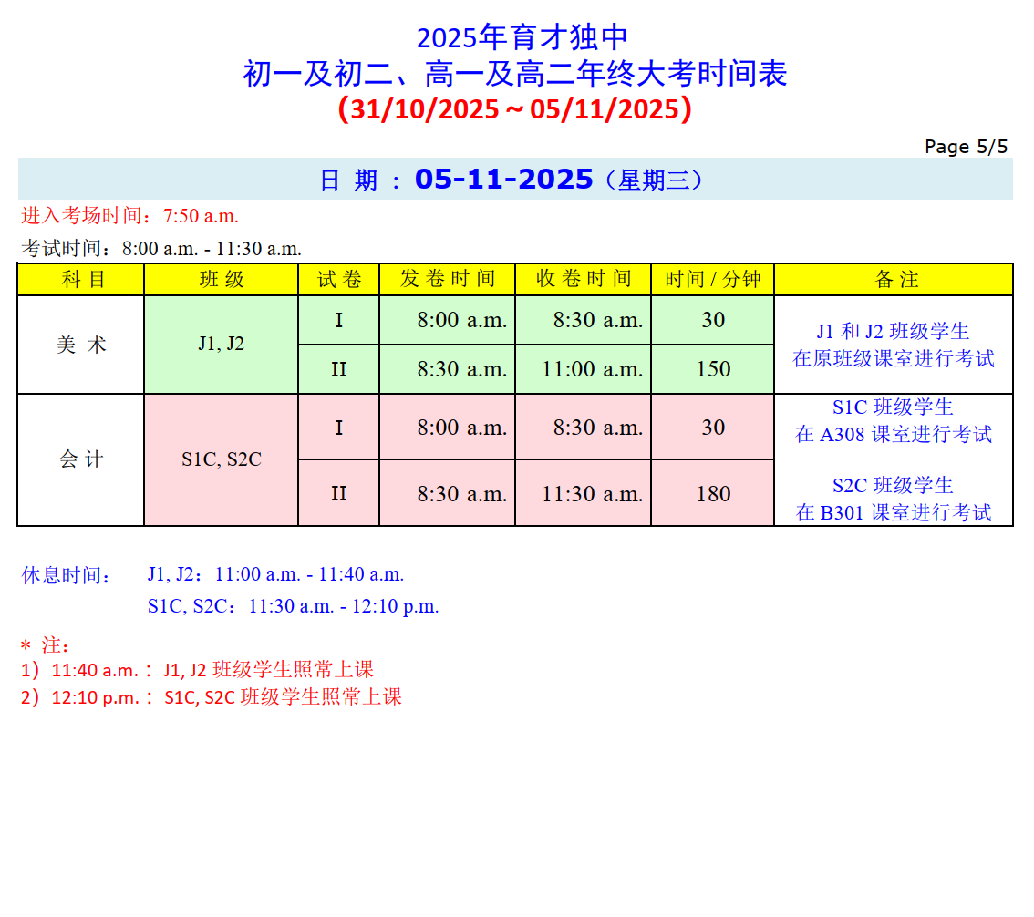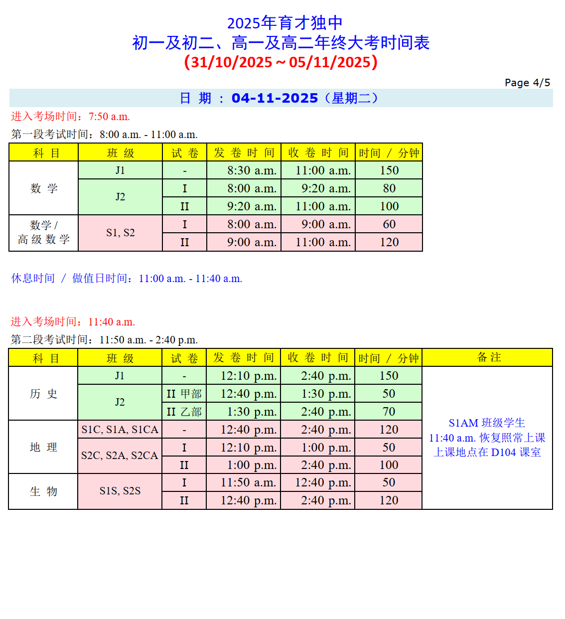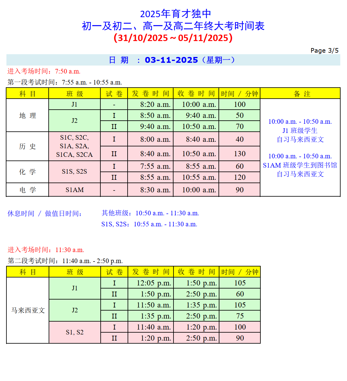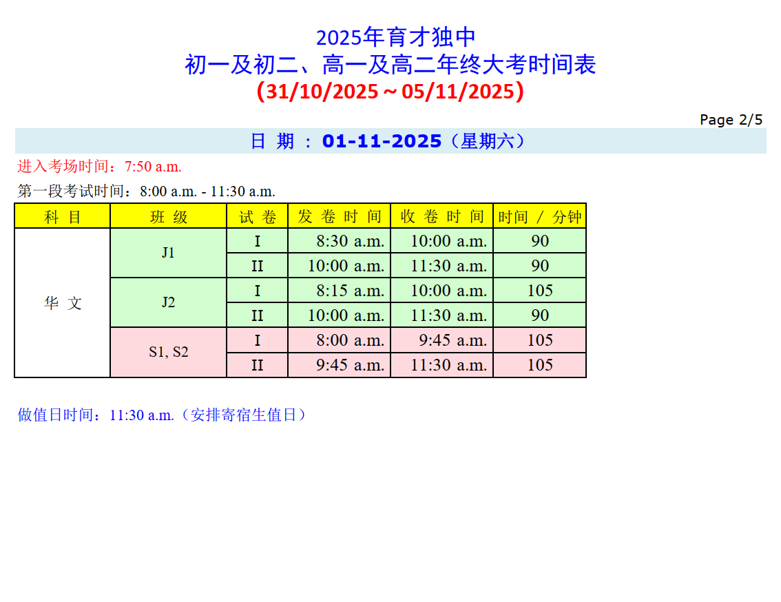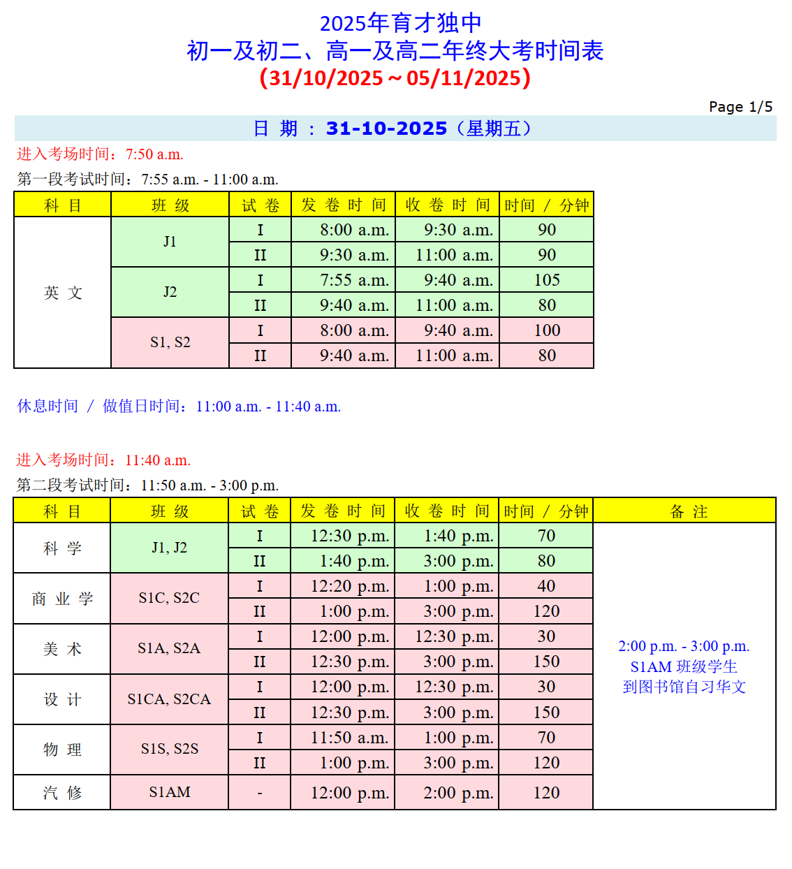 年 终 大 考 时 间 表 日期:31.10.2025(星期五)~ 05.11.2025(星期三) 点击图片可浏览和下载考试时间表。