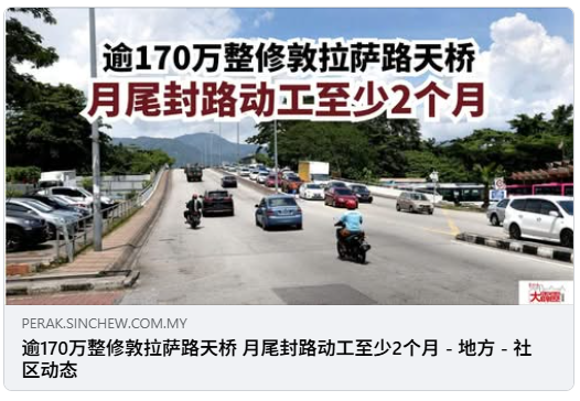 致:家长、学生 【驾驶人士须改用替代路线】根据怡保市政厅的消息,敦拉萨路天桥的重修工程从10月14日进行至明年1月6日,全面封路从10月30日起进行,涉及道路包括 Jalan Tun Abdul Razak、Jalan Tun Perak 和 Jalan Persiaran Kidd。驾驶人士须绕道而行,改用替代路线。 促请在出发前规划好路线。 新闻链接:https://www.sinchew.com.my/?p=6958298 怡保市政厅帖子:https://www.facebook.com/share/p/1GjNmar4kT/ 年终大考时间表【2025年10月31日-11月5日】