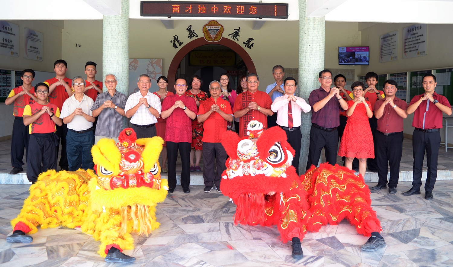 出席向各界贺年的一众成员包括董事长黄亚珠、署理董事长拿督吴国芳、副董事长拿督斯里李友成、董事会总务王瑞国、副总务张文惠、董事梁祖肇、苏民胜校长、谢志明副校长、陈美云副校长、刘志忠老师、朱荣熙老师等。