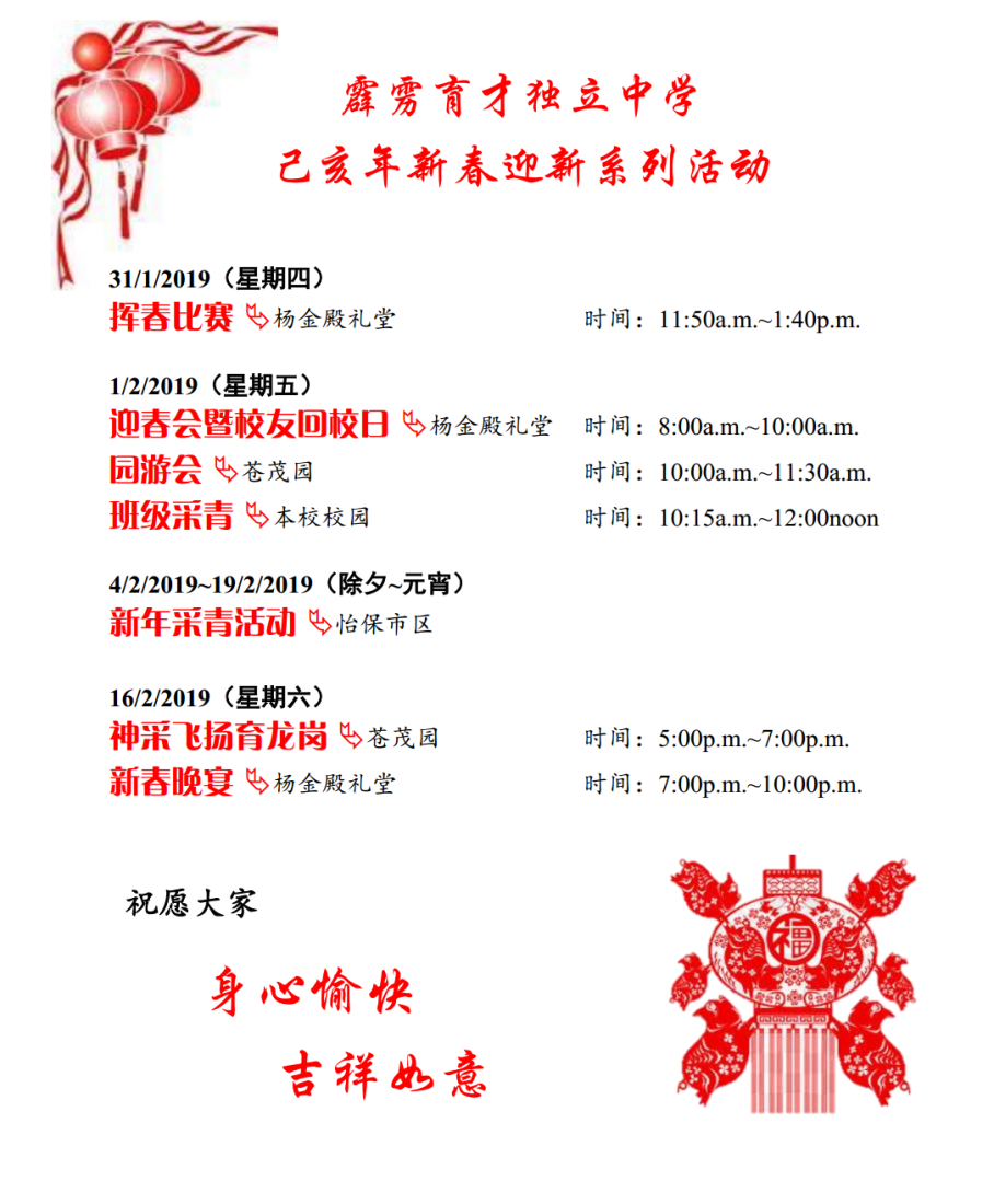 己亥年新春迎新系列活动