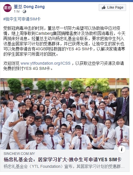 独中生也可以参与杨忠礼基金会 “居家学习计划”,申请免费 SIM 卡!