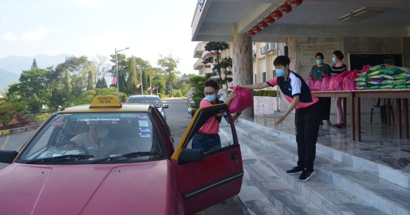 由于物资有限,因此本校开放50个名额给有需要的清寒学生家庭提出申请,并由辅导处安排受惠学生在上午至中午时段回校,让家长把车子开到行政楼大厅,由值班教职员把物资直接交到他们的手上。