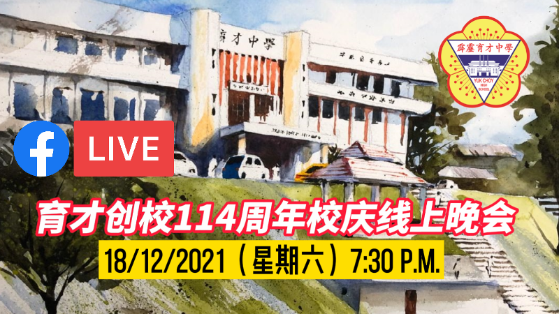 就在今晚!《育才创校114周年校庆线上晚会》晚上7点半,育才独中脸书首播,呼吁大家观赏线上校庆晚会,在线上一聚,为育才校庆祝福、喝彩、添欢乐。