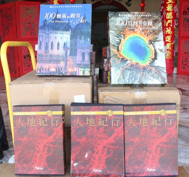 新生文化书坊挑选出许多页面精美、内容丰富的套装丛书捐赠予育才独中图书馆。