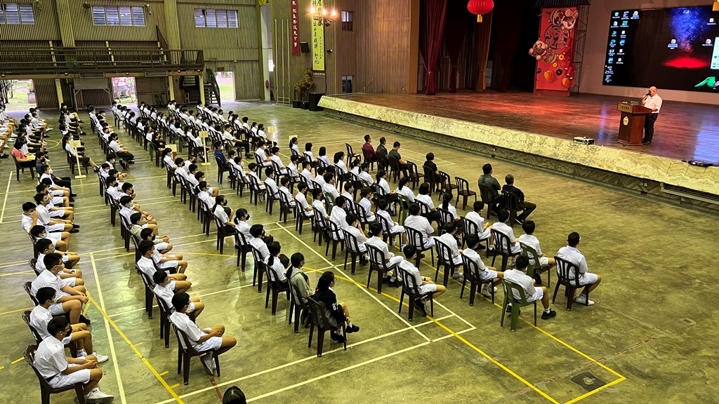 育才独中日前在杨金殿礼堂举行2022年新生说明会,让226名预备班、初中一和插班生互相认识及熟悉新环境。