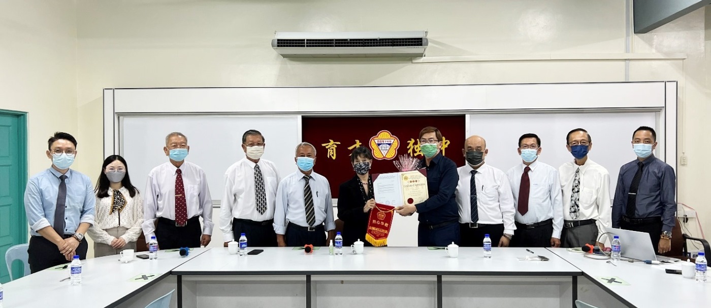 张志明于周五(2022年4月22日)到本校三楼会议室,与黎镇光校长进行教育基金签约仪式,由本校董事长郑美云见证。陪同出席者有署理董事长黄亚珠、副董事长拿督吴国芳、董事会总务刘子真、副总务王瑞国博士、财政黄伟生、董事会执行秘书余依程、刘国荣副校长、朱荣熙副校长、辅导处主任许环伟老师。
