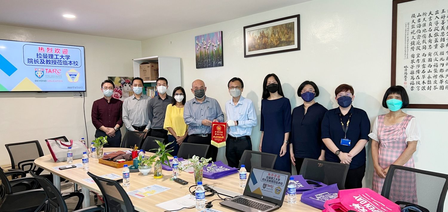 本校黎镇光校长、两名副校长刘国荣和朱荣熙、教务主任胡丽珍老师在会议室一同接待拉曼理工大学校长李仕伟教授、署理院长兼讲师黄俊彪、人文社会科学院院长卡蒂亚妮、霹雳分院主任严秀清博士和署理主任王郁妆、市场营销李佩沁。