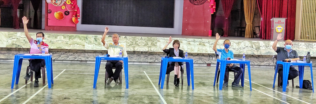 左起刘子真、黄亚珠、郑美云、黄伟生、黎镇光,支持通过大会提案。