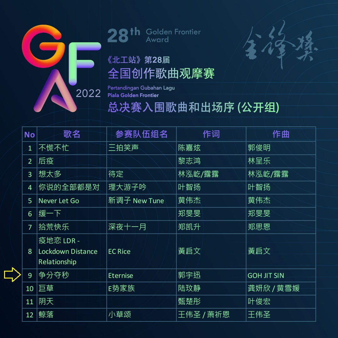 恭喜郭宇迅同学的两首作品分别入围《北工站》第28届“金锋奖”全国创作歌曲观摩赛的中学组和公开组决赛! 《附赠品》(作曲、作词): 入围 中学组 决赛 《争分夺秒》(作词):入围 公开组 决赛 决赛将于10月23日举行。