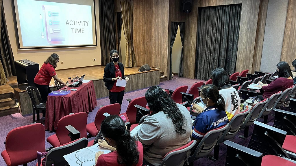 怡保 Quest 国际大学(Quest Inter­na­tional Uni­ver­sity)的讲师日前再次到来学校为英语教师们进行培训讲座,以提升教师们的英语教学品质。
