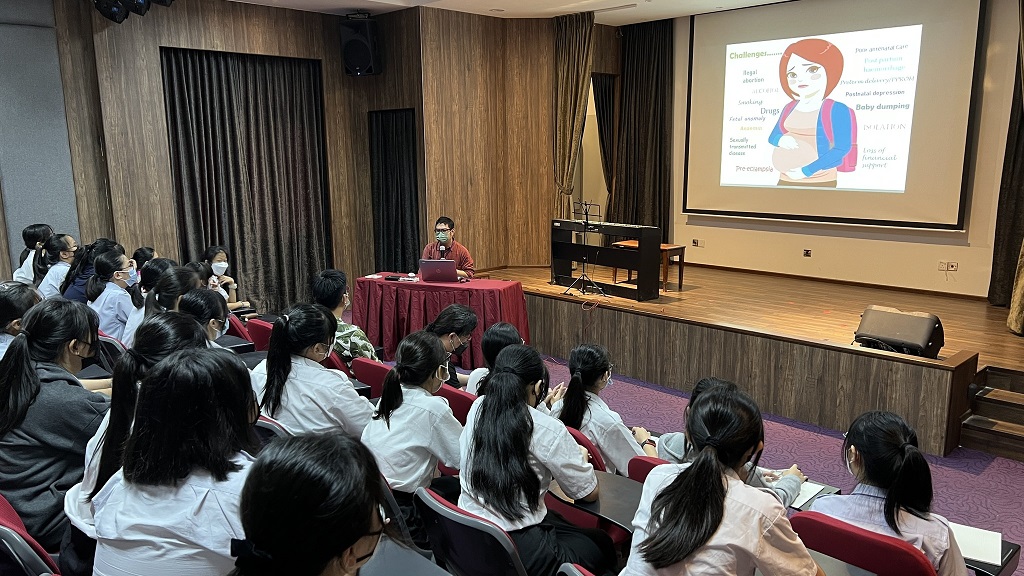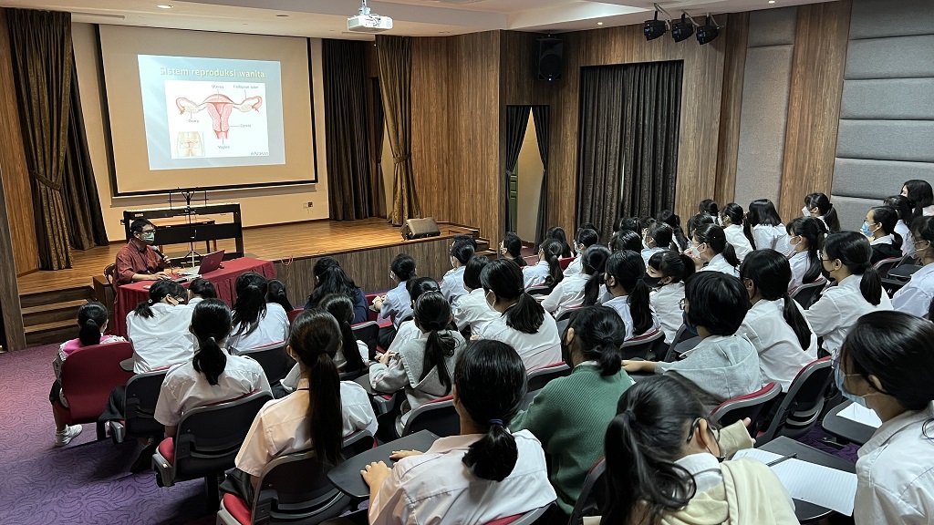 本校辅导处日前邀请了来自文冬诊所的学校注射疫苗组代表医生 Dr. Badrul 到来,为初中一和初中二的女生讲解关于注射子宫颈癌预防针的事项,如子宫的结构、患上子宫颈癌的原因、自我保护的知识、注射疫苗的好处及风险等。