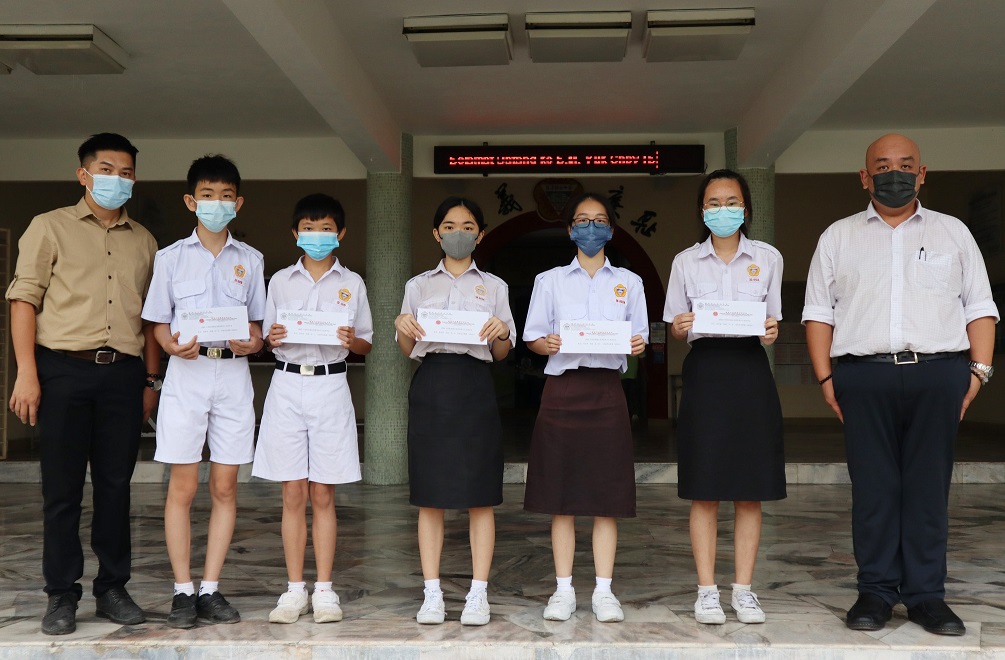 配合中国驻槟城总领馆联合北马四州董联会共同发起的 “情牵中马” 助学成才计划,本校有5名学生在此计划下受惠,分别是:高梓铭(初一仁)、陆宥嘉(初二孝)、郭楷泽(初二信)、黄妍妮(高二理)及邓洁铧(高二商一),每人可获得3千令吉的奖助学金。