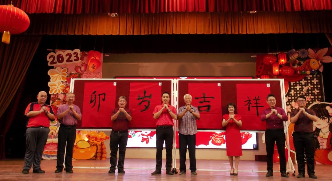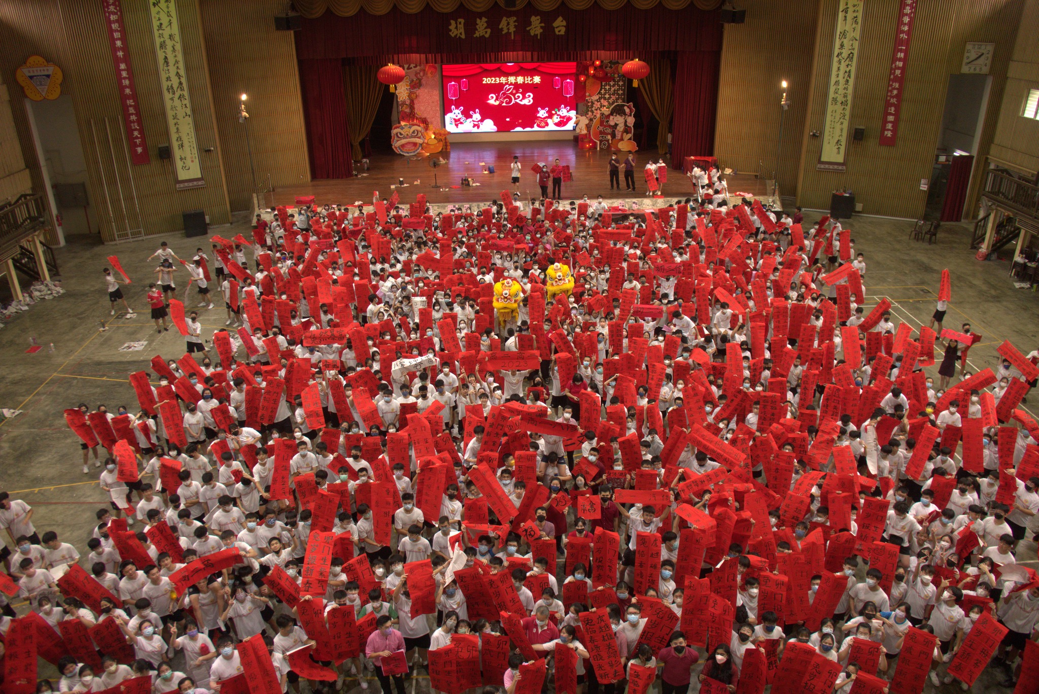 本校今天举行“2023癸卯年挥春比赛”,全校师生聚集在礼堂一起挥春迎兔年!本校董事部副总务吴景光先生和王瑞国博士、查账梁祖肇先生、董事甯育凤女士也到来一起挥毫“卯、岁、吉、祥”四个大字,向各界拜个早年!