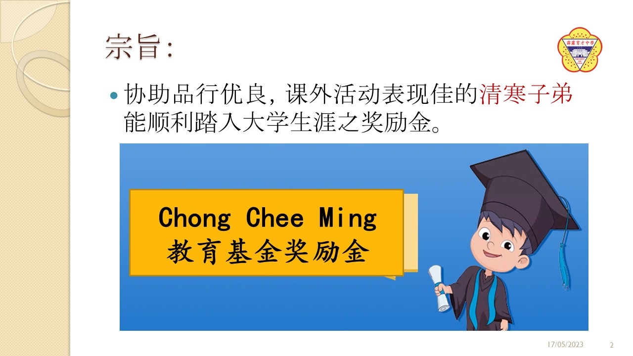 最新 育才新闻Chong Chee Ming 教育基金奖励金开放申请