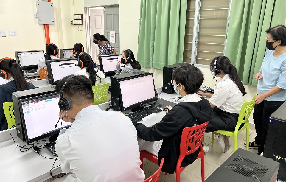 本校设有英语多媒体电脑中心,全校班级增加1节以电脑辅助方式进行的英语会话学习,提高学生的学习动力和兴趣;1节英语活动学习课程及传统教学5节,总共7节英文课。