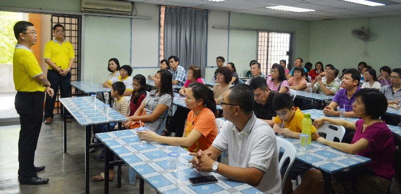 汽修科主任李国君(右)向家长讲解育才独中汽车维修科的特色。