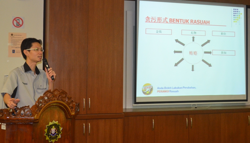 反贪会安排了布城总部的社会教育处调查官林锦新讲解贿赂的法律条文、罪成惩罚和构成贿赂案件,也播放短片让大家了解反贪污內容。
