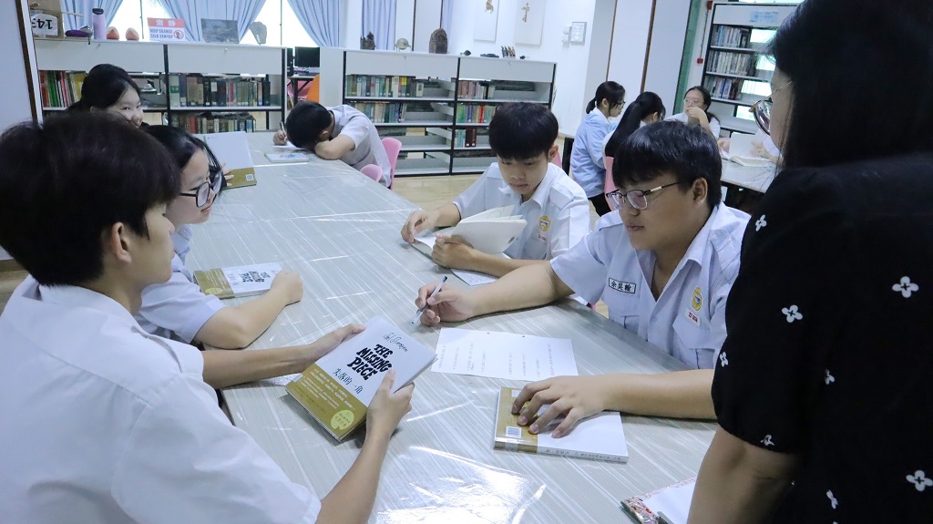 在高中文班的共读课中,同学们通过阅读课外书籍,彼此分享阅读心得,在交流与讨论中碰撞出新的想法。这不仅加深了同学们对文本内容的理解,也培养他们体会文字背后细腻情感与深层思想的能力。