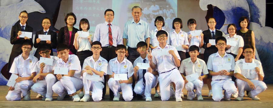 本校董事长黄亚珠在致词时说,在校长、老师、家长以及同学们的努力下,本校在2014年的华文独中统考中,取得了优异的成绩,多项科目的及格率超越全国的华文独中。他说,高中组的及格率是96.29%,在21项科目中有17个科目的及格率,高于全国独中的及格率。他指出,华文和英文的及格率是90%、国文接近99%,说明本校对三语教学的重视,并且取得优异的成绩。他说,初中组的及格率是89.41%,在8项科目中有5项的及格率超过全国,而在美工以及汽车维修专业的及格率,更是100%超越全国。