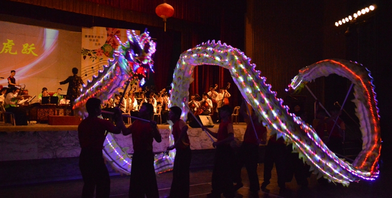 华乐团演奏《龙腾虎跃》,武术团呈献武术表演,龙狮团则呈献LED舞龙表演。