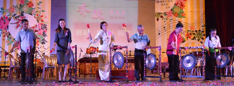 华乐团联同本校合唱团和霹雳嘉应会馆合唱团呈献歌曲。