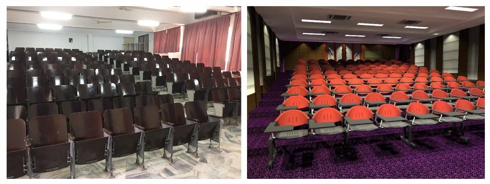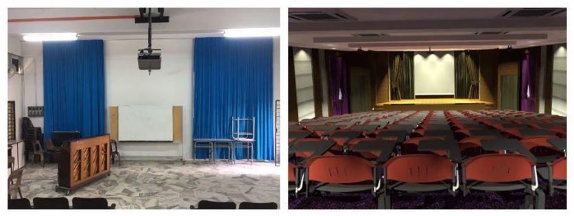 蔡任平讲堂内部原貌(左)与提升工程设计图(右)。