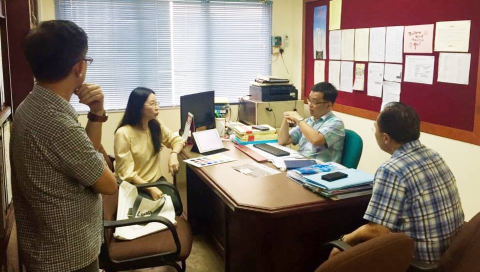 苏民胜校长(右二)与设计师讨论蔡任平讲堂提升事宜。