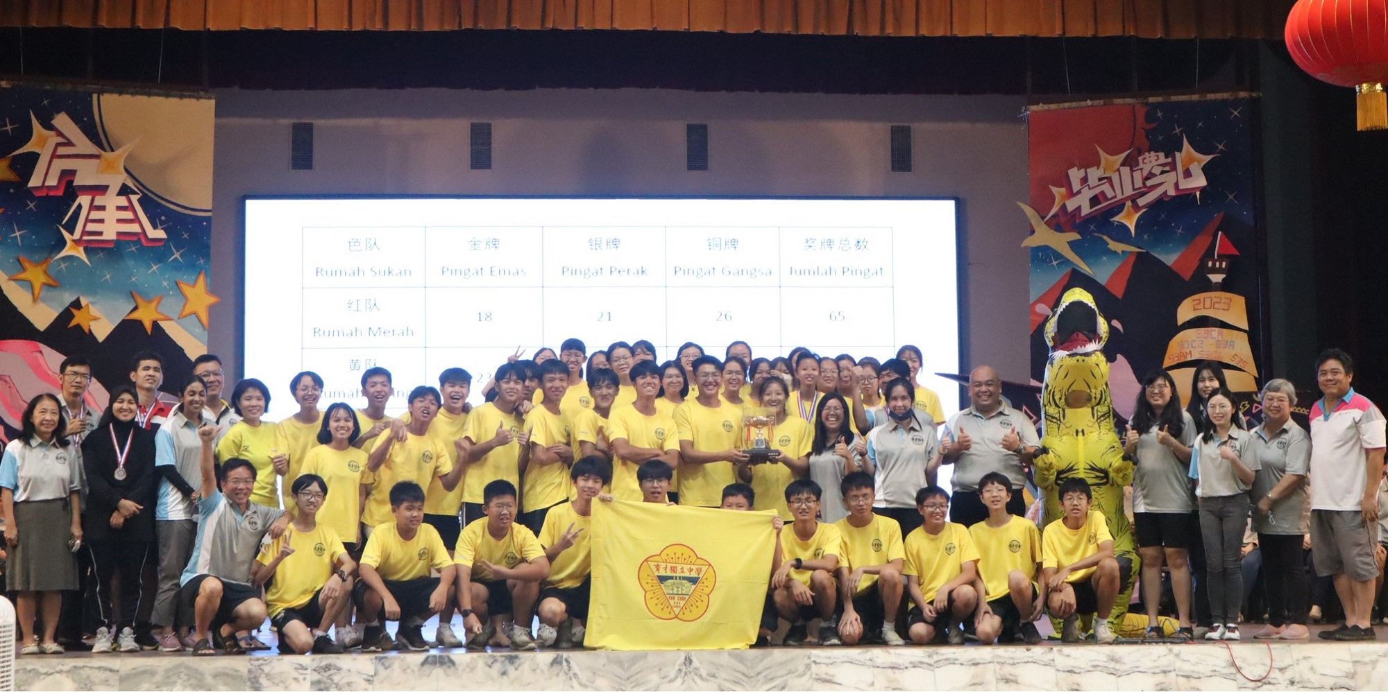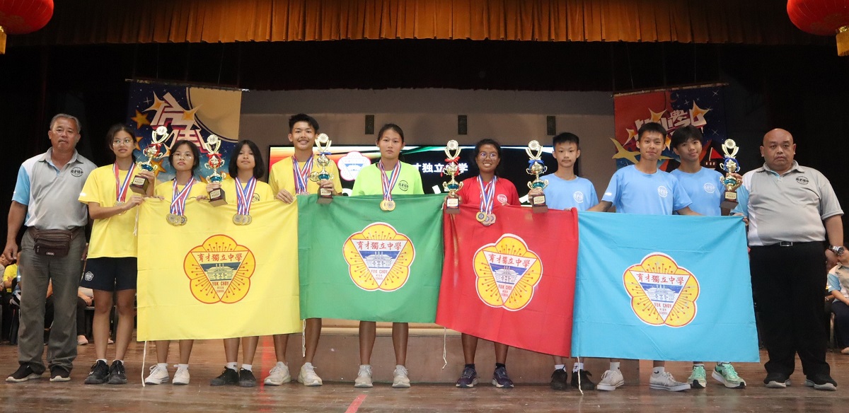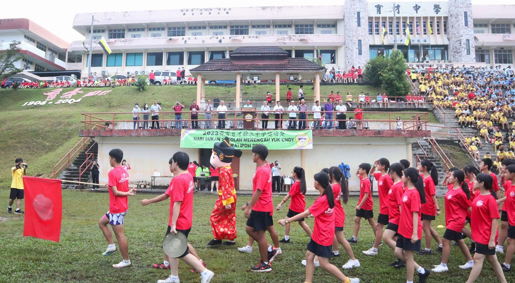 2023年校内运动会 2023年12月3日发布 继2018年后,时隔整整四年,本校于12月2日举行睽违已久的校内运动会,由学生所组成的红、黄、蓝、青四队队伍的运动员展开一场龙争虎斗,为代表队伍争取最高荣誉。 黎镇光校长在开幕仪式上鼓励和祝福参赛同学,并且表示这次的运动会正是一个让全校师生齐聚一堂,共同展现团结一致和拼搏精神的时刻! 他表示,运动会不仅仅是一场比赛,也是培养学生团队协作、拼搏进取精神的平台,是一次团结、友爱和公平竞赛的盛会。学生们在比赛的团队合作中迸发出激情和力量,体现出本校努力营造的健康、向上校园氛围。他说,正是因为对体育精神的热爱,所以本校决定再次举办这个盛大的活动。 董事长拿督吴国芳致词时鼓励每一位参赛的师生,不论胜负,都要保持积极向上的心态,在比赛中勇敢地挑战 自己的极限,汲取团队精神的力量。 他也称赞学生最近在校外各类型的活动赛事中报捷,学生所取得的荣耀,也是学校的荣耀,所以感谢同学们的努力,也感谢老师们的教导,希望大家再接再厉一同带领学校更上一层楼。 配合这次的运动会,各色队发挥创意,制作了最能代表色队的吉祥物,分别是红队的“财神爷”、黄队的“霸王龙”、蓝队的“灯神”和青队的“网红青蛙”。四个队伍的吉祥物在进行运动员绕场时作出趣怪的动作,惹得在场的师生哄堂大笑,场面愉快。 各色队运动员、服务团体等队伍操步进入草场时,黎镇光校长陪同董事长吴国芳、董事和嘉宾们在草场司令台上进行检阅仪式。之后,运动员代表朱雪珩同学带领全体参赛运动员宣誓,接着各色队代表轮流宣读竞赛宣言。 大会宣读运动员须知后,董事长拿督吴国芳在黎镇光校长陪同下按响笛声,笛声响彻云霄,象征运动会顺利进行及祝福运动场上的健儿们。 成绩方面,蓝队和黄队的累积金牌数目不相上下,都是23面金牌,最终黄队以16面银牌稍胜蓝队的12面银牌,成功夺得“全场总冠军”的荣誉! 男子甲组最佳运动员:何家程(黄队)、张宏毓(蓝队) 女子甲组最佳运动员:唐家娴(青队)、朱雪珩(红队) 男子乙组最佳运动员:张世烜(蓝队) 女子乙组最佳运动员:许卉珏(黄队) 男子丙组最佳运动员:黄文信(蓝队) 女子丙组最佳运动员:马萱桐(黄队)、许睿淇(黄队) 制服团体最佳操步奖:学长团 色队最佳精神奖:青队 全场总冠军:黄队 . . “无极限” 美术展 12月1日至3日举行