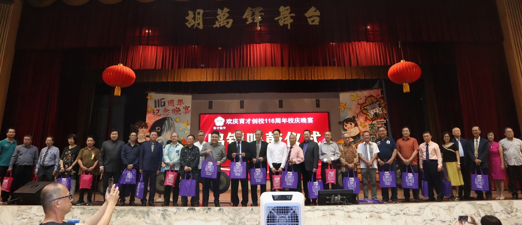 欢庆育才创校116周年纪念晚宴筵开超过130席 2023年11月26日发布 欢庆育才创校116周年纪念晚宴成功筵开超过130席的盛宴,超越去年123席的记录,感谢各界热心人士踊跃支持! 本校学生在晚宴上呈献多项节目,包括华乐演奏、管乐演奏、舞蹈表演、刘于恩同学独唱、醒狮表演。此外,晚宴上也进行美酒拍卖,由 The Brew House Ipoh 报效4瓶威士忌,美酒拍卖环节共筹获2万3188令吉,分别由万里香(RM 1188)、本校副董事长拿督斯里罗智柔局绅(RM 5000 和 RM 7000)、PMW(RM 10000)标得。 当晚,议员嘉宾也捎来“育才校庆”拨款的礼物喜讯,房屋及地方政府部长倪可敏的代表 – 霹雳州国内贸易、合作社、消费人及华人新村事务行政议员吴家良宣布拨款2万令吉,以及兵如港州议员YB吴锡华和九洞州议员谢保恒各拨款5000令吉予本校。 晚宴尾声,校庆工委会主席兼副董事长张福兴教授联同大会主席兼董事长拿督吴国芳率领众董事会成员一起上台给出席的来宾们敬酒,谨代表学校向大家致以衷心的感谢,有大家的支持,育才独中才能办得有声有色。 |