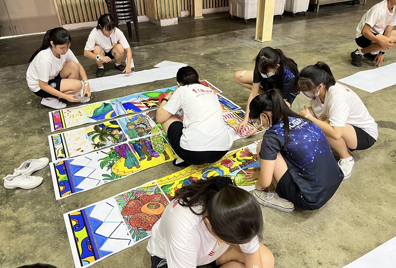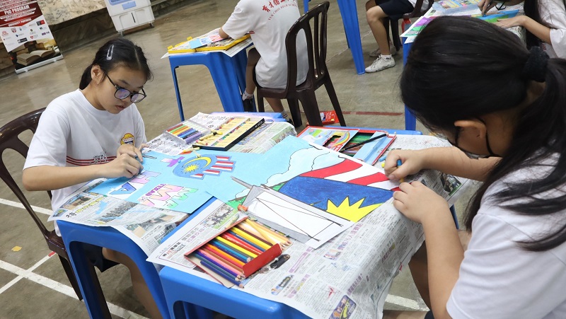 本校参与创育大学学院国庆日彩绘活动 2023年8月9日发布 国庆日脚步将近,本校初二仁和高一文美班的66位同学于8月8日参与由马来西亚创育大学学院(ALFA University College)在本校杨金殿礼堂举办的国庆彩绘活动,完成了一幅大型彩绘图,祝福大马66周年独立快乐! 这幅大型彩绘图由两幅图画组成,面积有8米长6米宽,彩绘图里有今年国庆日及马来西亚日庆典的主题标志,即“昌明大马:坚定团结,满怀希望”(Malaysia MADANI: Tekad Perpaduan Penuhi Harapan),此外还包含了辉煌条纹、国花、各族人民、国父东姑阿都拉曼、默迪卡118大楼、月亮风筝等大马元素,也有标注着育才独中和创育大学学院的校名。 同学们给彩绘图稿完成上色后,用贴纸将图稿拼贴在一起时,两幅色彩艳丽而且独特的彩绘图画映入眼帘。黎镇光校长、两位副校长刘国荣和朱荣熙,教务处主任胡丽珍老师、美术科主任古景遥老师、科任老师李绣秀和陈嘉慧、马来西亚创育大学学院导师许森和以及他的团队成员,还有参与的同学们,纷纷与自己彩绘完成的作品合影,雀跃不已。 黎镇光校长表示,校方希望同学通过团结合作完成国庆彩绘的过程中,意识到国民精诚团结是发展国家和为国家带来稳定的基石,从而建立和培养爱国情操。 他也感谢创育大学学院成员的莅临,与美术科老师一起为同学们安排这项富有意义的活动,冀望接下来能够与该院拥有更多的合作及体验。 马来西亚创育大学学院导师许森和表示,每张彩绘图稿经裁剪后,每位同学负责彩绘一张图稿,图稿完成填色后再拼接起来,由于每位同学的用色都不同,所以彩绘图画拼接起来后颜色五彩斑斓,带来不同的视觉美感,希望大家能从中发现差异的美。 他表示,最重要的也是希望透过这项彩绘活动,祝福我们的国家马来西亚66周年独立快乐,继续繁荣昌盛,各族坚定团结。