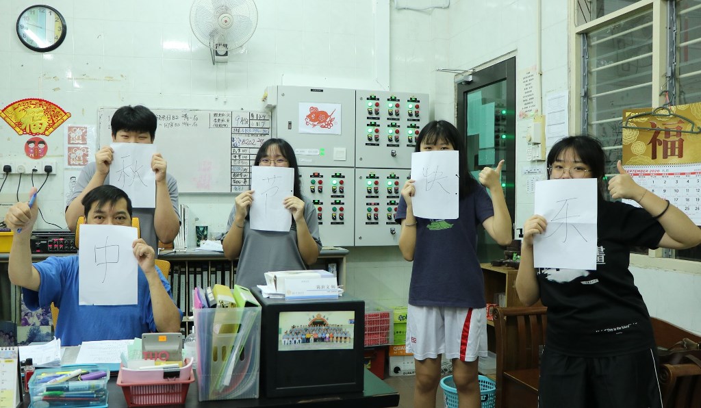 2020年宿舍中秋晚会 2020年10月5日发布 本校宿舍日前举行宿舍中秋晚会,全宿舍约300名寄宿生一同欢庆佳节,舍务处主任陈世文还充当音乐DJ,让寄宿生凭点歌寄意,点播喜爱的歌曲,为疫情下的中秋节增添一点喜庆的气氛。 陈世文表示,受到疫情的影响,宿舍无法举办如往年般的大型庆祝活动,但庆祝中秋节向来是宿舍其中一项重点活动,因此只好折衷简化庆祝方式,让这个传统能够延续下去,也让孩子们知道庆祝中秋节的意义,同时,让全体寄宿生过个简单而喜庆的中秋佳节。 文:宣教处 照片:舍务处 陈世文(前排右)与宿舍自治委员们派发造型可爱的中秋月饼给全体寄宿生。 .