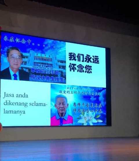 全体教职员默哀一分钟,缅怀本校已故前董事长陈汉水先生和王明华老师。