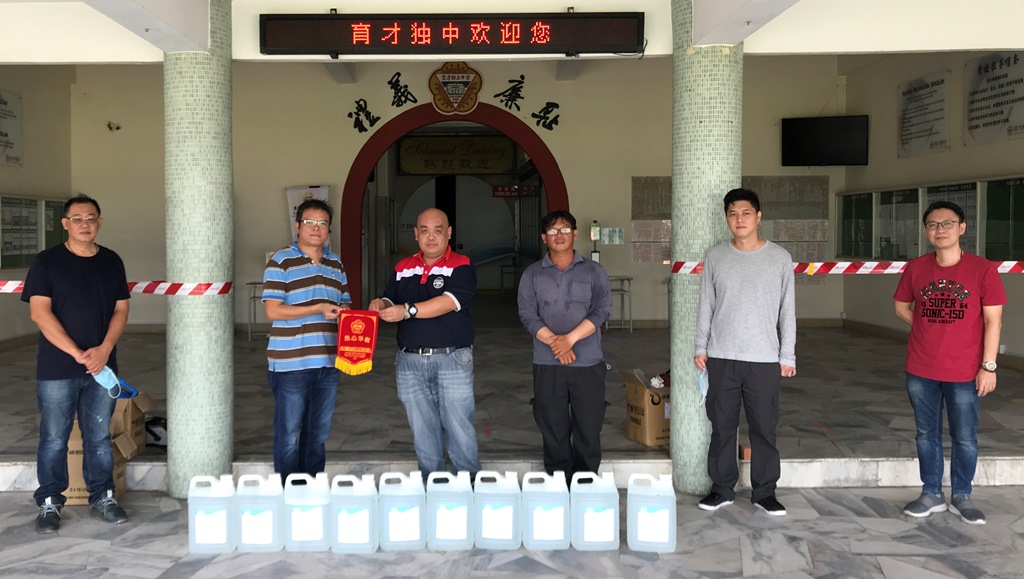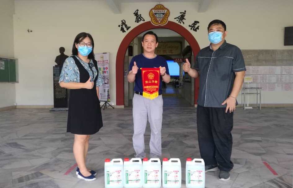 感谢2017年毕业校友谢嘉欣的父亲谢振祥捐赠 5 桶消毒药水 2020年6月26日发布 本校日前获得2017年毕业校友谢嘉欣的父亲谢振祥捐赠 5 桶消毒药水,由事务处主任锺国华老师和宣教处主任蔡雪莉老师代表接领。 谢振祥表示,一桶消毒药水要价数十令吉,学校复课后每天进行校园消毒,对学校来说是项经济负担。他说,本身有经营消毒药水批发生意,所以决定捐助予学校,且该品牌的消毒药水已获得政府相关部门的产品安全认证,学校能安心使用。 文、照片:宣教处