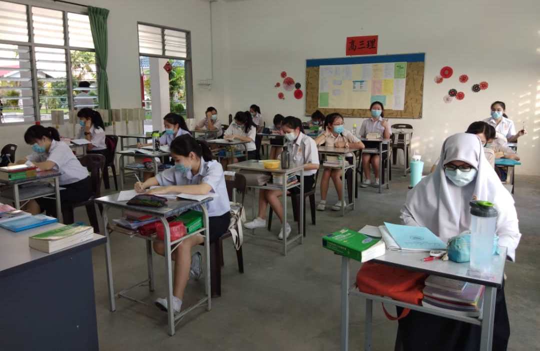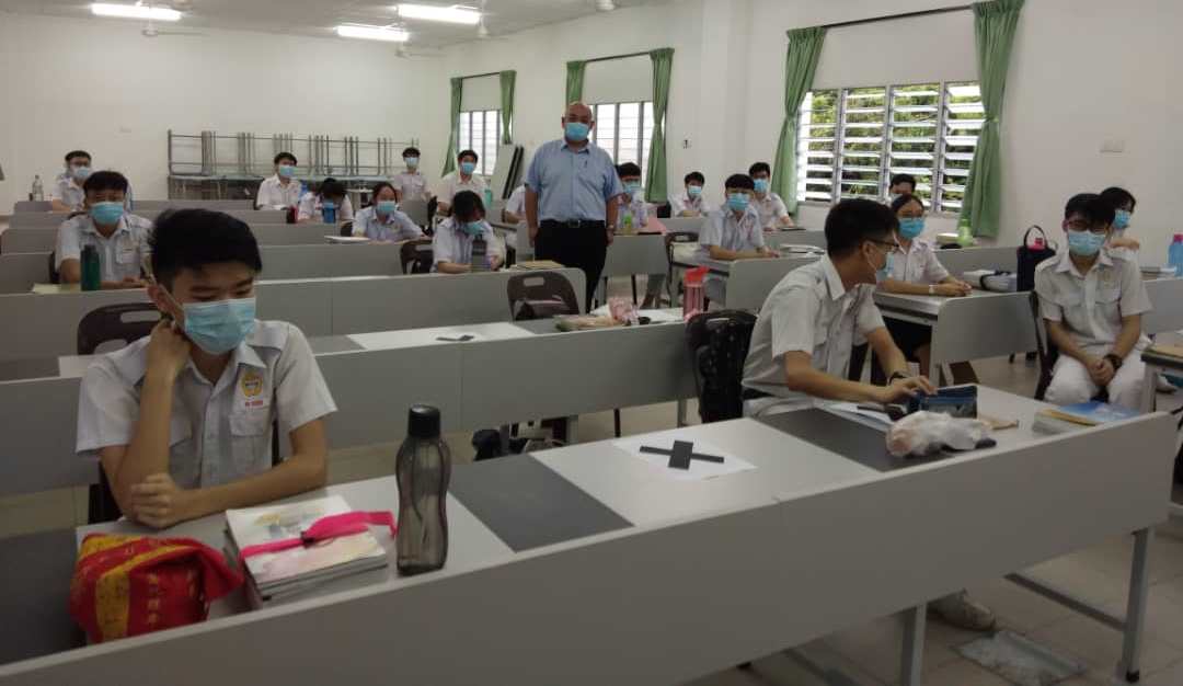 育才独中高三学生复课 严格监督校园社交距离 2020年6月25日发布 育才独中高三学生6月24日开学复课,黎镇光代校长和几名老师今早7时便守在指定的校园入口处,引导223名高三学生返校复课。 “同学们,分开一点,保持一米距离。” 我国于3月18日开始实施行动管制令,学生已阔别校园超过2个月,复课首日相见甚欢。惟如今处于疫情时期,老师严谨地监督每名学生保持社交距离,在校园入口处便不断对学生作出提醒。 学生进入校园前,老师除了使用手持电子温度计,也透过红外线体温测量设备测量每位学生的体温。 学生们从测温通道走过后,沿着路线指示抵达各自的课室门前,用免洗搓手液洗手消毒后才进入课室。 教室内,所有学生座位保持至少一米的距离,学生和老师上课时都必须佩戴口罩;有的老师也自备透明防护面罩。 黎镇光代校长表示,复课首日,学生进班后,训育处有透过学校广播提醒同学复课注意事项。上课及休息时段,也安排教职员严格看管学生的走动范围,包括规定学生只能在课室内用餐。 “学校不敢掉以轻心,谨遵复课标准作业程序,一切以教职员和学生的安全为最大考量。” 文、照片:宣教处