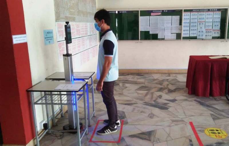 【复课防疫措施】获赠热感测温仪 2020年6月19日发布 在董总的努力争取下,绿驰通讯集团(Green Packet)为华教慷慨解囊,赠送全国独中每校一台 KipleLive 热感测温仪。6月18日,技术人员林志明前来为本校安装测温仪,协助学校加强防疫措施。本校代校长黎镇光与各部门正副主任,亲身体验了测温仪,对此赞誉有加。