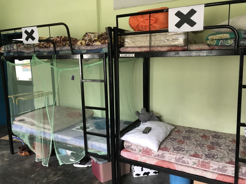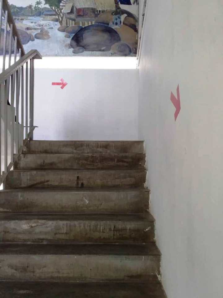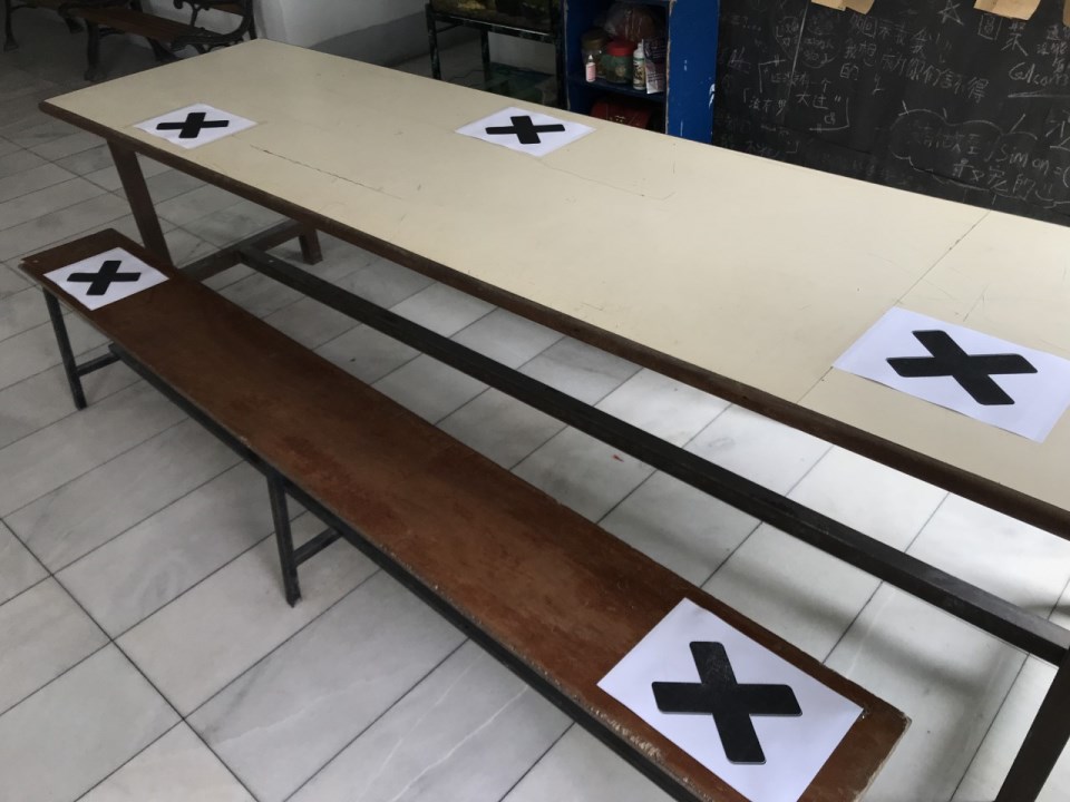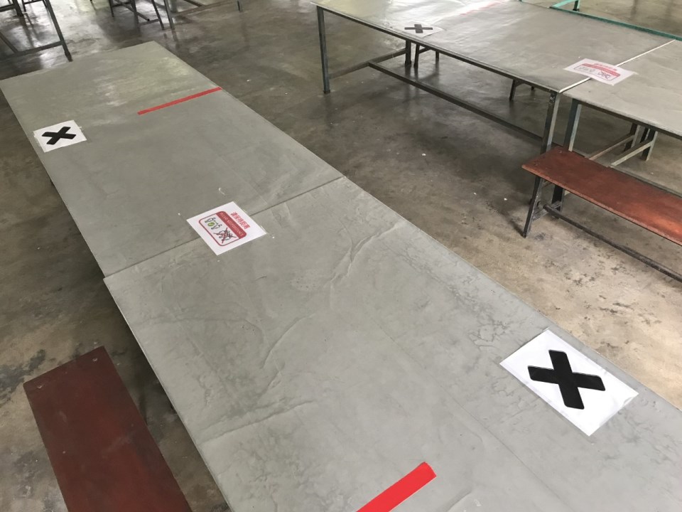 【复课防疫措施】宿舍 随着复课的日期越来越接近,本校为复课的寄宿学生和教师做好宿舍的防疫措施,让师生们能够有个安全的居住环境。除了休息场所和食堂的桌椅贴有保持社交安全距离的标示,地面上和楼梯都贴有行动路线的方向箭头标志。每个寝室只能容纳 2 人,床位也重新分配,保持距离。