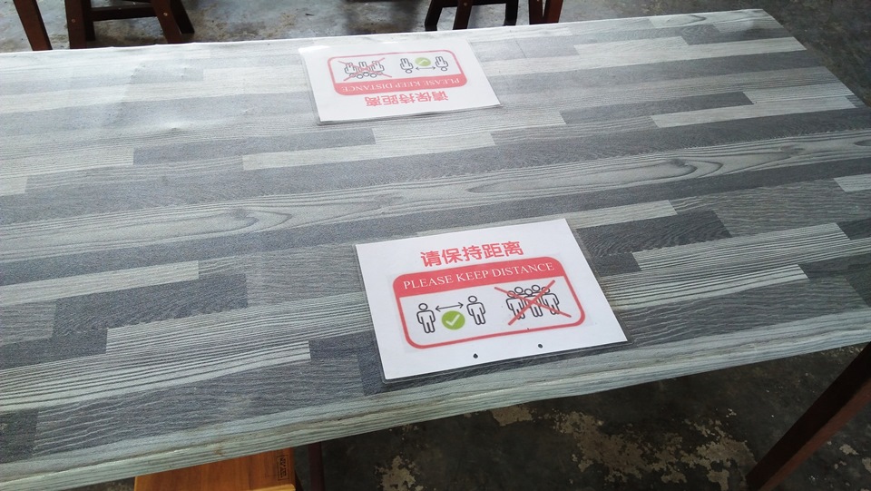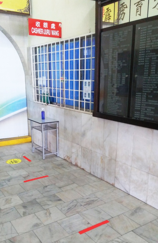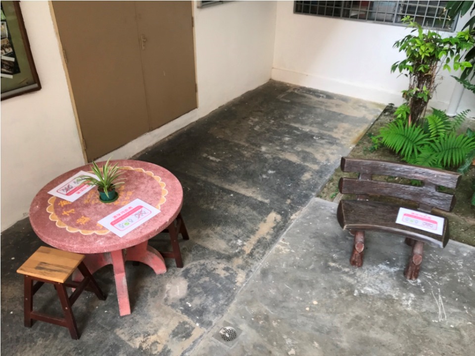 【复课准备】校园公共空间 随着复课的日期越来越接近,本校为学生复课做好一系列的防疫措施,让师生们能够在安心的情况下上课。在校园内的公共区域,都贴上保持安全社交距离的标示,如休息场所、洗手间等;另外在需要排队的地方如贩卖部、收银处的地面上也贴有保持距离的胶带。
