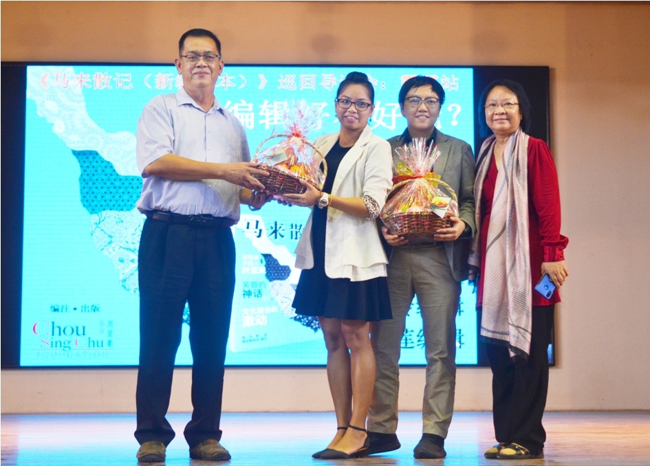 《马来散记》导读会 带领育才独中师生回顾历史 2019年9月8日发布 由大众书局呈献的《马来散记(新编注本)》导读会,于日前在本校举行,让本校师生对这一本读物及其作者鲁白野有更深的认识。 怡保大众书局经理余丽兰偕同新加坡周星衢基金会的两位编辑,郭诗玲及仇莉莲,前来为本校师生推介这本重新编注的《马来散记》。郭诗玲和仇莉莲皆为该读物的编辑,因此他们也为在场的师生讲解“当编辑好不好玩?”这个课题,让师生更加了解编辑的工作和编注该读物时所面对的事项。 此外,他们也介绍了《马来散记》的作者鲁白野这位马新著名的文学家,并简单讲解他短暂却不平凡的一生,也让本校师生了解到鲁白野除了是怡保人外,更是曾经在育才学校念书的校友,其作品的内容丰富,适合广大读者阅读。 《马来散记(新编注本)》共分六卷,分别是《史话》、《方志》、《人物》、《风物》、《掌故》及《文艺》,皆是与马来亚历史相关的资料,郭诗玲和仇莉莲也抽出读物内的几个章节,教导学生如何学习鲁白野的写作手法,以提升学生的写作技巧。 本校谢志明副校长(左一)赠送纪念礼篮予两位新加坡周星衢基金会的编辑, 左二起仇莉莲、郭诗玲(右二)、怡保大众书局经理余丽兰。 本校办科普实验工作坊 提升学生科学知识