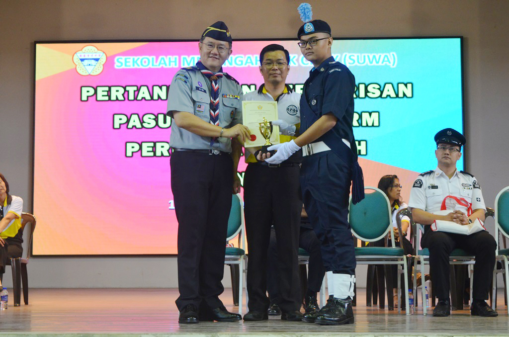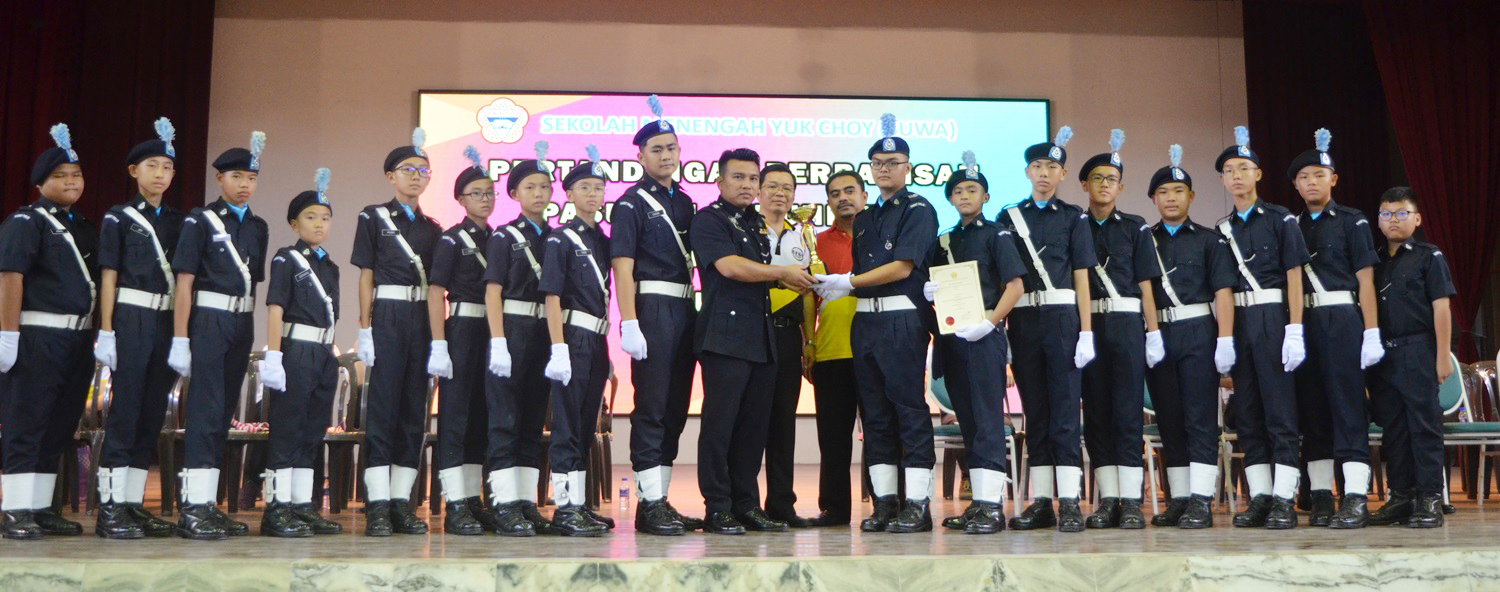 配合国庆日及马来西亚日,本校于2019年9月11日(星期三)首次举行校际操步比赛,共有8支队伍参加,除了本校的女童军团、男童军团、学长团、宿舍自治委员会、管乐团、圣约翰救伤队,还有育才华中的Kadet Polis(学警团)和宗教学校 S.A.B.K MAAHAD AL-IMAN ASY-SYAFIEE的Kadet Pertahanan Awam(公共自卫队少年军)。 比赛的宗旨是为了提升学生的纪律和培养爱国情操,及促进各校学生之间的交流。 出席嘉宾包括霹雳州教育局(私立及特别教育组)官员Eni Zanifah、九洞区警局局长Rashidi bin Othman,北近打区童军长官陈世昌、圣约翰救伤队长官林国伟,本校董事长黄亚珠。 左六起九洞区警局局长Rashidi bin Othman、苏民胜校长、霹雳州教育局(私立及特别教育组)官员Eni Zanifah、 黄亚珠董事长、圣约翰救伤队长官林国伟、北近打区童军长官陈世昌、谢志明副校长、陈美云副校长。 . . 【育才独中2019年校际操步比赛成绩】 冠军:育才独中学长团 亚军:育才华中 Kadet Polis 季军:育才独中管乐团 最佳司令员:廖俊铭 (育才华中 Kadet Polis) 最佳队伍造型:育才独中学长团 冠军:育才独中学长团 . 亚军:育才华中 Kadet Polis . 季军:育才独中管乐团 . 最佳司令员:廖俊铭 (育才华中 Kadet Polis) . 最佳队伍造型:育才独中学长团 《马来散记》导读会 带领育才独中师生回顾历史