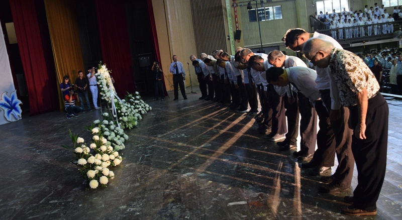 本校主办2018年华教先贤日追思会 2018年11月17日发布 本校于2018年11月13日(星期二)举办华教先贤日追思会,目的是缅怀与学习华教先贤的艰苦奋斗精神,激励大家坚持为华教事业奉献力量。这项追思会由马来西亚维护华教联合会主催,在本校杨金殿礼堂举行,获得本校董事和全体师生、全国性和霹雳州多个华教组织、文教团体、学校以及政党代表出席。 出席以及前来致敬者包括华教元老谢荣珍和陈凯、马来西亚维护华教联合会主席叶新田博士、董教总教育中心董事林裕、新纪元大学学院董事刘耀宗、马来西亚华校生协会会长陈文达、马来西亚嘉应会馆总会代表拿督丘才干、霹雳董联会主席拿督李官仁、马来西亚蕉岭同乡会总会顾问林柏辉、马来西亚南洋大学校友会周增禧、马来西亚老友联谊会、马来西亚凤凰友好联谊会黄栢森、马来西亚21世纪联谊会彭明祥和梁广和、马来西亚雪隆草根护华联合会陈国光、马来西亚厦门大学校友会、马来西亚雪隆校友会联合会叶全发、马来西亚梅州会馆总会邹寿汉、马来西亚槟州校友会联合会骆保林、马来西亚槟州热爱华教团体联合会工委会蔡亚汉等。 追思会由华教先贤日工委会总务王瑞国博士主持,蔡建福宣读追思文。工委会代表、各华教组织、文教团体、学校及政党代表轮流上台献花,并进行三鞠躬礼致意华教先贤。仪式上也进行华教先贤短片播放和诗歌朗诵。 蔡建福宣读追思文。 . 华教先贤日工委会代表、各华教组织、文教团体、学校及政党代表轮流上台献花,并进行三鞠躬礼致敬华教先贤。 . 左起丘才干、叶新田、林裕、刘耀宗、陈文达献花致敬华教先贤。 . 大会主席黄亚珠董事长致词时说,通过举办追思会,是要激发大家尤其是学生、年轻的一辈,认识我国华教的历史,以及先贤永不放弃的精神和艰辛耕耘的意志,也促使大家要牢记历史,不忘初心,向先贤学习和致敬,继续为华教事业努力奋斗。
