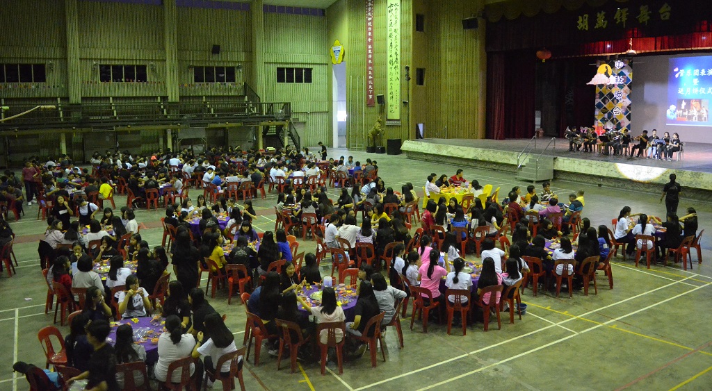 宿舍2018年中秋晚会 本校宿舍日前举办一年一度的中秋晚会,全宿舍约400名寄宿生与老师及家长共聚在杨金殿礼堂欢庆中秋。 今年的宿舍中秋晚会主题为“圆·欢”,意思是团圆和欢喜。苏民胜校长在致词时说,举行宿舍中秋晚会是本校历年来的传统,今年因迁就考试的缘故而延迟了举行。他说,举行中秋晚会的目的是希望学生谨记和传承中华文化,并珍惜和同学在一起聚餐的机会。 他指出,本校宿舍也有相当多年的历史,因此有些硬体设备已经老旧,亟需翻新和提升。他表示,从今年的校庆晚宴中已经筹募到了一笔资金来维修和提升宿舍的设备,预计将会在年尾的学校假期中进行提升工程,让寄宿生能够有更舒适的居住环境。 当晚除了有乐器演奏、歌唱和舞蹈表演外,也有进行猜灯谜、幸运抽奖和颁奖仪式。