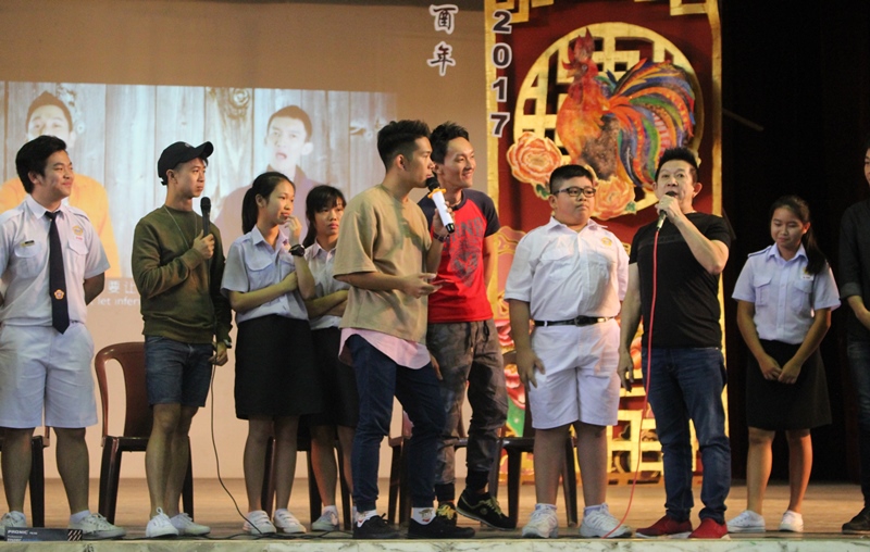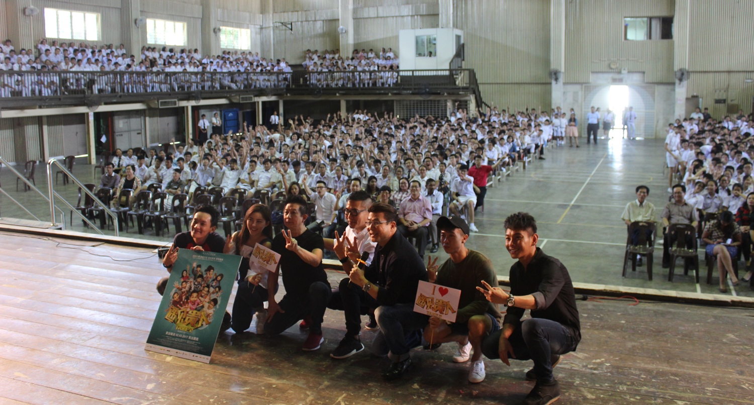 一众嘉宾在现场挑选了几位学生一同上台玩游戏,并引起师生们的热烈反应。交流会虽然只有短短的一个小时,但师生们都对这部电影留下深刻的印象,并表示将会到电影院购票支持。 《遇见贵人Take 2》监制、导演及一众演员与本校教师合照。左起联课活动助理陈佩颐、教务副主任许环伟、程旭辉、副校长兼辅导主任陈美云、副校长谢志明、梁志强、夏友庆、林俊良、邓晴冰、联课活动主任朱荣熙、联课活动副主任刘志忠、陈俊权和廖永谊。 . 演员们和学生在台上玩游戏互动。 |