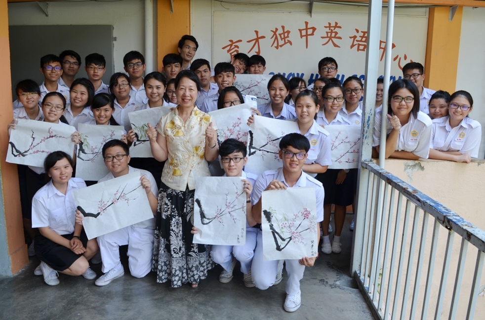 蔡淑贞(右)教导学生画水墨画的技巧。 。 她说,人品和画品是相辅相成的,人品好,画品自然好。因此她在教导学生作画时,都会要求他们体会画中的意境,从中学习四君子的高尚品德。她希望学生能够借此把艺术生活化,生活艺术化,让日常生活也感染到艺术的气息。此外,她也赞赏育才独中有良好的学习风气,学生们都很用心学习,校方也提供周全的招待,让她感到宾至如归。 本校美术科主任古景遥老师说,校方共安排了4个班级的132名学生参与这项活动。她表示,通过这项活动,学生可以见识到外国教师的教学方式和风格,让学生更容易投入和吸收有关水墨画的知识和技巧。她透露,这项活动获得学生们的踊跃支持,蔡老师的到来有助于提升学生们对水墨画的兴趣和创作水平,也让学生们有机会近距离接触外国画家,向她学习和交流。她相信这类活动可以对学生产生激励的作用,开拓学生的视野。 “蔡老师的画作清淡素雅,在遵循古人传统上另创新意,虽是写意画却可见小细节的用心,她的教导为学生们打开另一扇通往水墨画的门径。”本校高三文美班学生丘颖瀚如是说。 另一名高二文美班的学生汤国庆则表示,经过蔡老师的指点,他明显感受到自己在水墨画上有所进步,并且学习到如何以心平气和的心态来作画,这个课程让他获益匪浅。 学生展示经过蔡淑贞指导的水墨画。 。