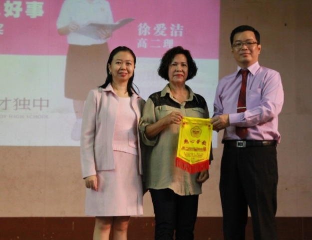 好人好事甄选赛 本校4学生获奖 本校“校园内的好人好事”甄选比赛成绩日前已出炉,共有4名学生获奖,分别是张善恒、钟宇程和刘洁萦各获得入选奖,以及徐爱洁获得优胜奖。 左起辅导处主任陈美云老师、苏民胜校长、钟宇程、刘洁萦、张善恒、徐爱洁、舍务处主任陈世文老师。 这项活动由大纪元时报马来西亚报社举办,本校日前在周会上安排了一项颁奖仪式。苏民胜校长致词时勉励同学们要存好心、说好话、做好事,以此三项美德共同塑造一个和谐安宁的社会。 苏民胜校长(右一)颁赠纪念锦旗给大纪元代表。 左起主编黄美仪、区域经理唐秀燕。 大纪元时报主编黄美仪致词时说,好人好事奖不是给考试第一名或者得冠军的学生,而是要颁给秉持中华传统美德的学生。她说,一般人过于注重学生的学业成绩表现,却往往忽略了更重要的东西,那就是传承中华传统美德。 她表示,中国是文明古国,拥有博大精深的文化内涵,儒家的仁义礼智信,是做人的基本道德标准。一个人的品德好,在社会上不论从事什么行业,都会是一个为别人着想的好人。 她说,独中除了注重教育品质外,也注重学生的品德培养。衡量教育成功与否,不应只看学业成绩,栽培出品德高尚的下一代,那才值得骄傲。 辅导处主任陈美云老师说,这项活动有助于提升校内的道德风气,并鼓励和宣扬同学们的良好品行。她表示,本校共有18名学生被提名参与这项比赛,并由本校85位教职员参与投票,向报社推荐4位最佳人选,报社代表透过面谈决定3名入选奖得主和1名优胜奖得主。 |