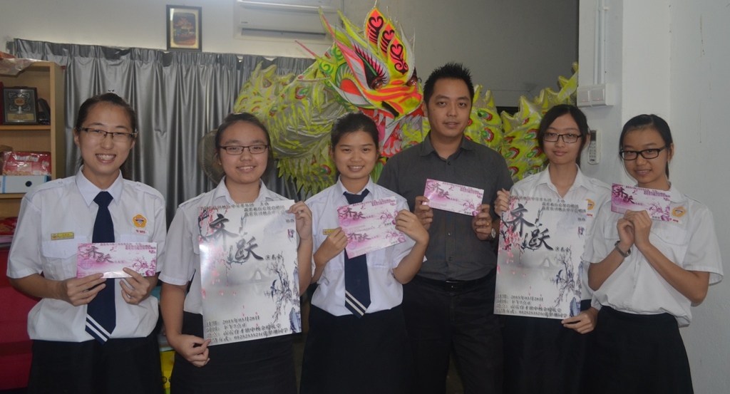 本校今晚办华乐演奏会 筹募乐器经费 育才独中诚邀大家本周末一起到九洞本校校园参加一场音乐飨宴。 为了向社会大众推广健康文娱活动、弘扬中华音乐、提升同学们的演奏水平,本校华乐团将于3月28日(星期六)晚上7时在本校杨金殿大礼堂举行《齐跃》华乐演奏会。 联课活动处主任朱荣熙(右三)和华乐团主席张如意(左二)呼吁有兴趣的人士支持华乐演奏会。 团员假期里回校练习 本校华乐团主席张如意说,全体有参与演出的团员们都在过去一周的学校假期内回到学校来进行密集的集训和排练,积极筹备演出,以期在紧锣密鼓的排练下为观众呈献最完美的演出。 张如意也是这次演奏会的筹委会主席,她表示,除了排练以外,该团也安排一些团员在老师的带领下前往怡保区的各中小学宣传这项活动,并获得热烈的响应,这为他们对于当晚的演出注入了一剂强心针。 本校联课活动主任处朱荣熙说,这是一项筹款演出,希望透过举办音乐演奏会,为本校华乐团筹措添购和维修乐器的经费。他呼吁热心人士慷概赞助,以让演奏会得以顺利完满的进行。凡乐捐15令吉将获回赠学生券一张、乐捐20令吉将获回赠普通券一张,乐捐60令吉将获回赠贵宾券一张。他也欢迎社会人士以赞助的方式支持演奏会。凡赞助300令吉或以上者将成为演奏会的剪彩嘉宾,并回赠贵宾券2张、赞助500令吉或以上者将成为演奏会的亮灯嘉宾,并回赠贵宾券2张,以及赞助1000令吉或以上者将成为演奏会的鸣锣嘉宾,并回赠贵宾券4张。 除了华乐演奏,届时参与演出的还有霹雳嘉应会馆合唱团,以及育才独中合唱团、舞蹈工作群、龙狮团和武术团,想必会为大家带来惊喜,呈献精彩的艺术表演。本校华乐团上一次举行公开演奏会是在2012年,当年获得广大音乐爱好者的支持,演出非常成功。 有兴趣出席该演奏会的人士受促尽早联络本校华乐团(05 – 526 0963 , 526 7912)或联络本校联课活动处主任朱荣熙(016 – 553 4625)或助理李伟盛(016 – 513 0609)。
