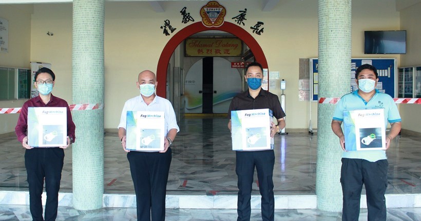 本校感谢QR OYES有限公司创办人林藻钿捐赠4台消毒喷雾机予本校, 左起刘国荣副校长、黎镇光校长、朱荣熙校长、事务处主任锺国华老师。 . 本校日前获得QR OYES有限公司创办人林藻钿捐赠4台消毒喷雾机。 黎镇光校长表示,校方做足防疫措施,以保障学生返校上课的健康及安全,非常感谢热心商家林藻钿的慷慨捐助,让校方使用有关喷雾机消毒课室,为师生打造一个安全的教学环境。 他说,育才独中是一所民办学府,仰赖广大社会人士本着维护母语教育的精神,出钱出力,才能够继续生存和发展,让学生有学习母语和中华文化的机会。因此,也非常感谢各界热心教育人士长期以来给予校方的援助和支持。 另外,黎校长也提醒有意报读育才独中的华小毕业生尽快报名,勿错过将于本周六(11月13日)上午8时30分举行的2022年度第二次初中一新生线上入学编班考试。 他表示,除了招收2022学年的初中一新生,本校也招收文美班、汽修班新生和各年级的插班生,并有各类的奖助学金提供给成绩良好及家境清寒的学生申请。关于2022年度新生报名事项,欢迎点击链接下载招生简章(www.yukchoy.edu.my/download/2022-YukChoy-Intake.pdf),任何询问可以电邮联络教务处(该邮件地址已受到反垃圾邮件插件保护。要显示它需要在浏览器中启用 JavaScript。),或联络电话05 – 526 7912、05 – 526 0963。 高三生返校复课