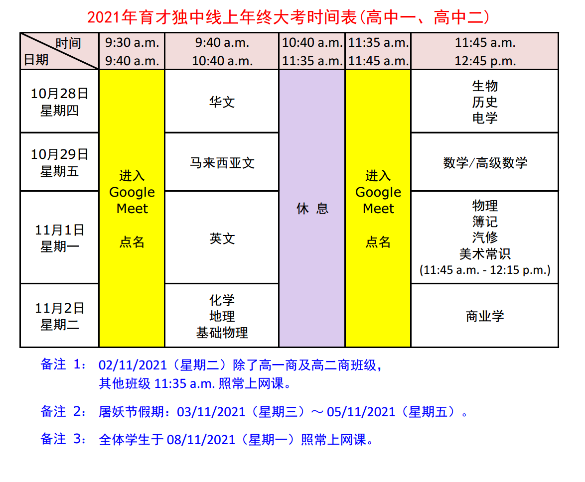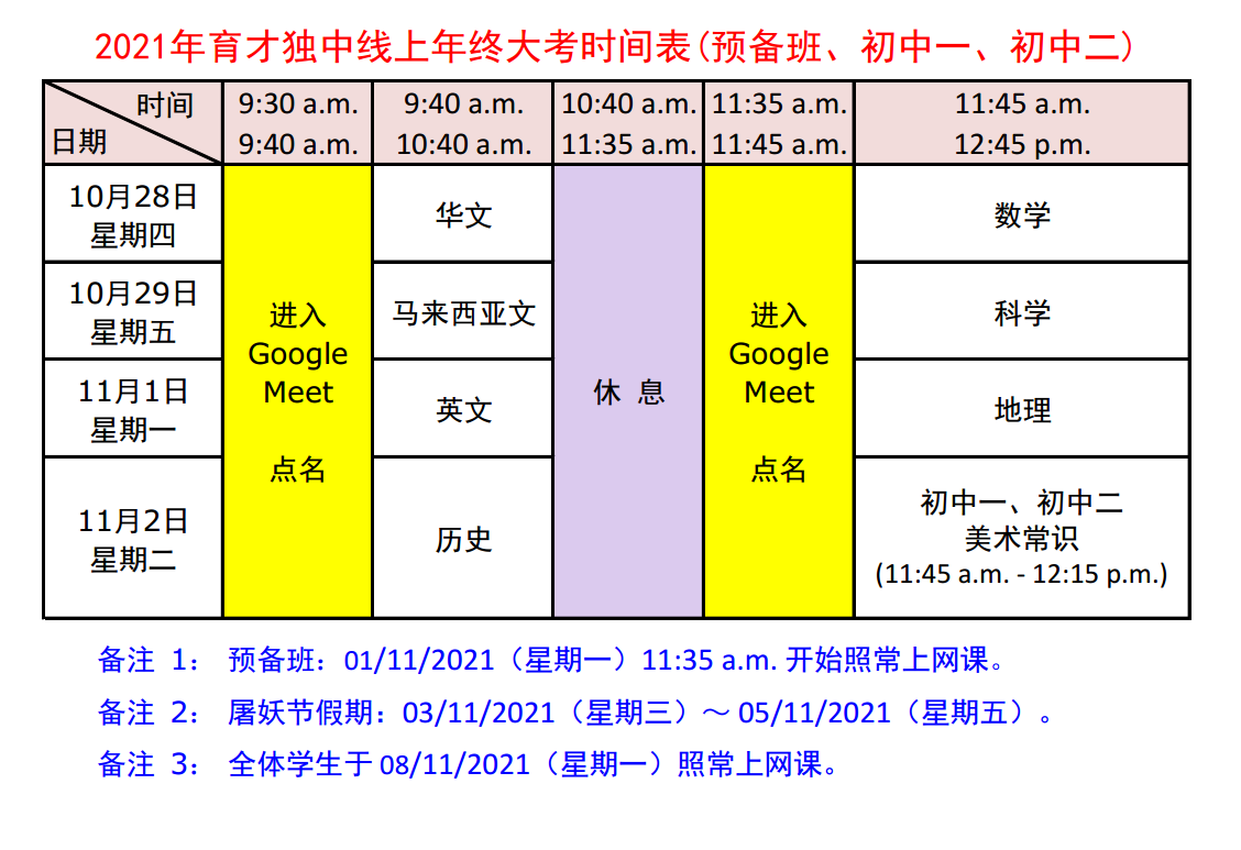 预备班、初一、初二、高一、高二线上年终大考 2021年10月28日至11月2日 欢迎尽快报名2022学年新生线上入学考试